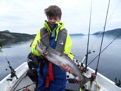 Und der Mats mit einer erstklassigen Meerforelle - Petri!
