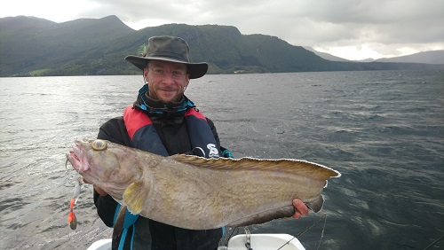 Michael mit großem Seelachs, nachdem er sich durch viele "Fischverluste" durchbeißen musste