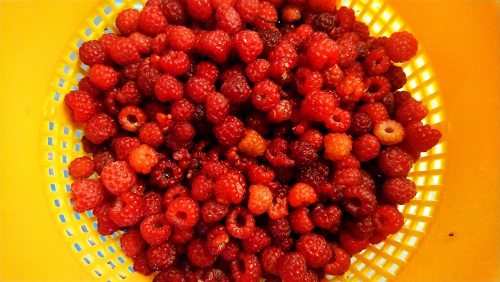 Himbeeren ohne Ende! Seit Tagen hängen die Büsche rund ums Haus voll und laden ein zum Sammeln.