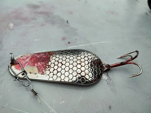 Eingenetzt: Sideplaner / Scherbrett Topla 2 in der von mir so ganz modern "Invincible" getauften Farbe mit schönem See-Hecht...
